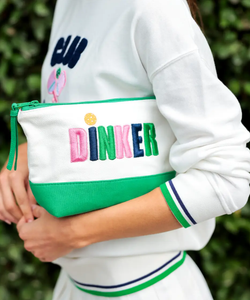 Meet The "Dinker" Zip Pouch, The Ultimate Courtside Companion For Pickleball Lovers! This Canvas Pouch Features Vibrant Embroidered Lettering, A Playful Pop Of Green Color Blocking, and A Sturdy Zip Closure To Keep Your Essentials Secure. Perfectly Sized To Hold Your Phone, Sunscreen, and Keys, It’S The Ideal Grab-and-Go Accessory For On Or Off The Court. Stay Organized and Let Everyone Know You’Re Ready For A Good Dink!