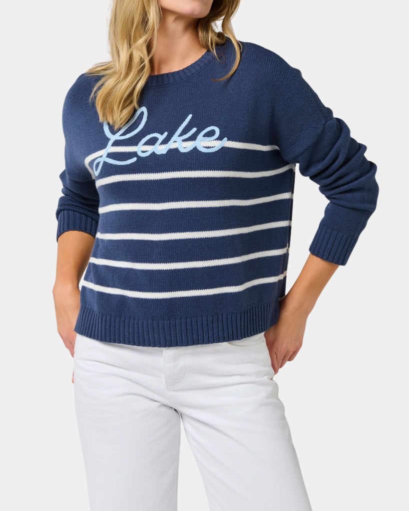 Meet the Lake Sweater Top—Shiraleah's navy essential that's equal parts cozy and stylish. Machine washable and tumble-dry friendly, it's designed for real life. Perfect for gifting or keeping all to yourself, this relaxed-fit piece brings effortless charm to any day.