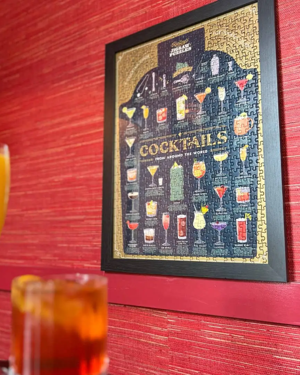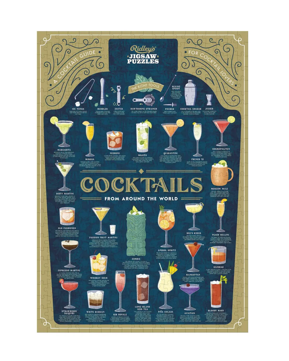 Celebrate your love of cocktails with this fun 500-piece puzzle featuring over 25 drinks from around the world. Discover drink histories and eight exclusive cocktail recipes as you piece together beautiful illustrations of classic cocktails. Frame your finished puzzle as instant wall art. Comes in giftable tube packaging—perfect for cocktail and puzzle enthusiasts alike.