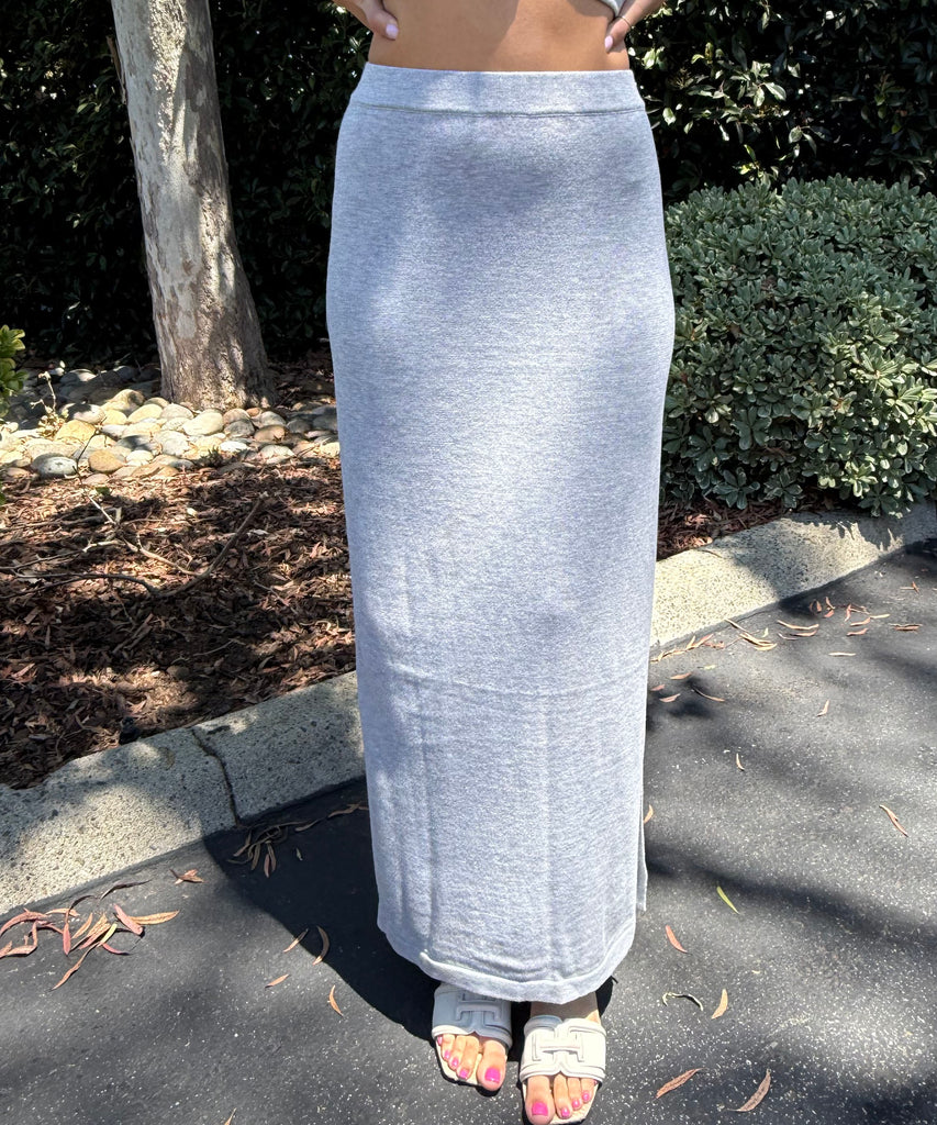 This soft knit skirt features a classic shape, a side list and an elastic waistband. Dress it up with the matching vest top or a blouse or keep it casual with your favorite tee.