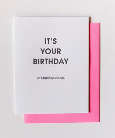 This It's Your Birthday! Let's Fucking Dance! card is letterpress printed on a vintage printing press.