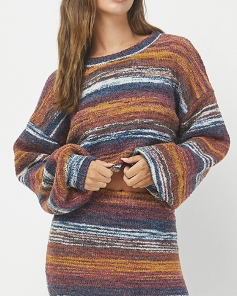 Elevate your wardrobe with this sophisticated Space Dye Sweater Top in rich burgundy. For a coordinated look, pair it with its matching skirt to create a polished set that exudes effortless elegance and modern style.
