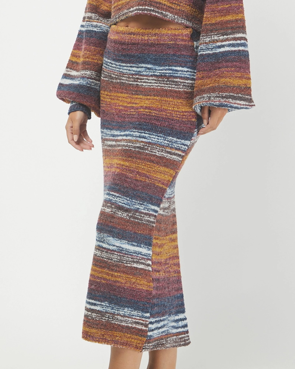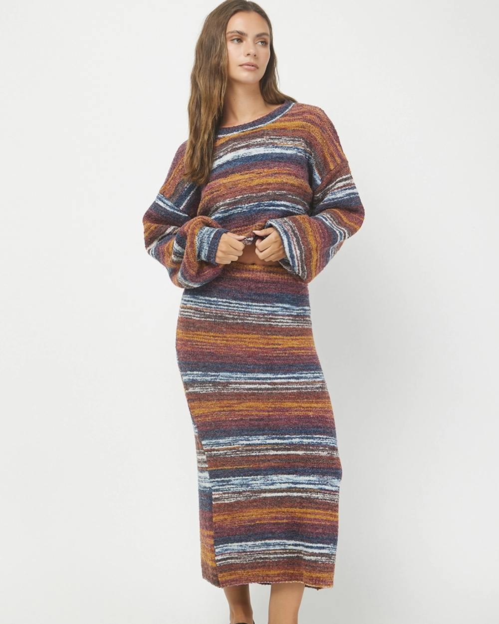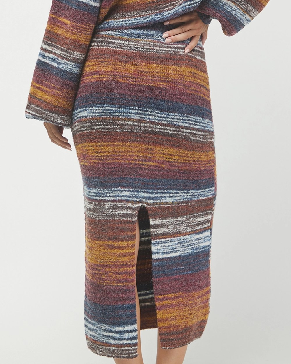 Make a statement with this burgundy space dye sweater skirt that's bursting with character. The swirled tie-dye design brings visual interest to your everyday looks, while the soft, snuggly knit keeps you feeling cozy and fabulous from morning to night.