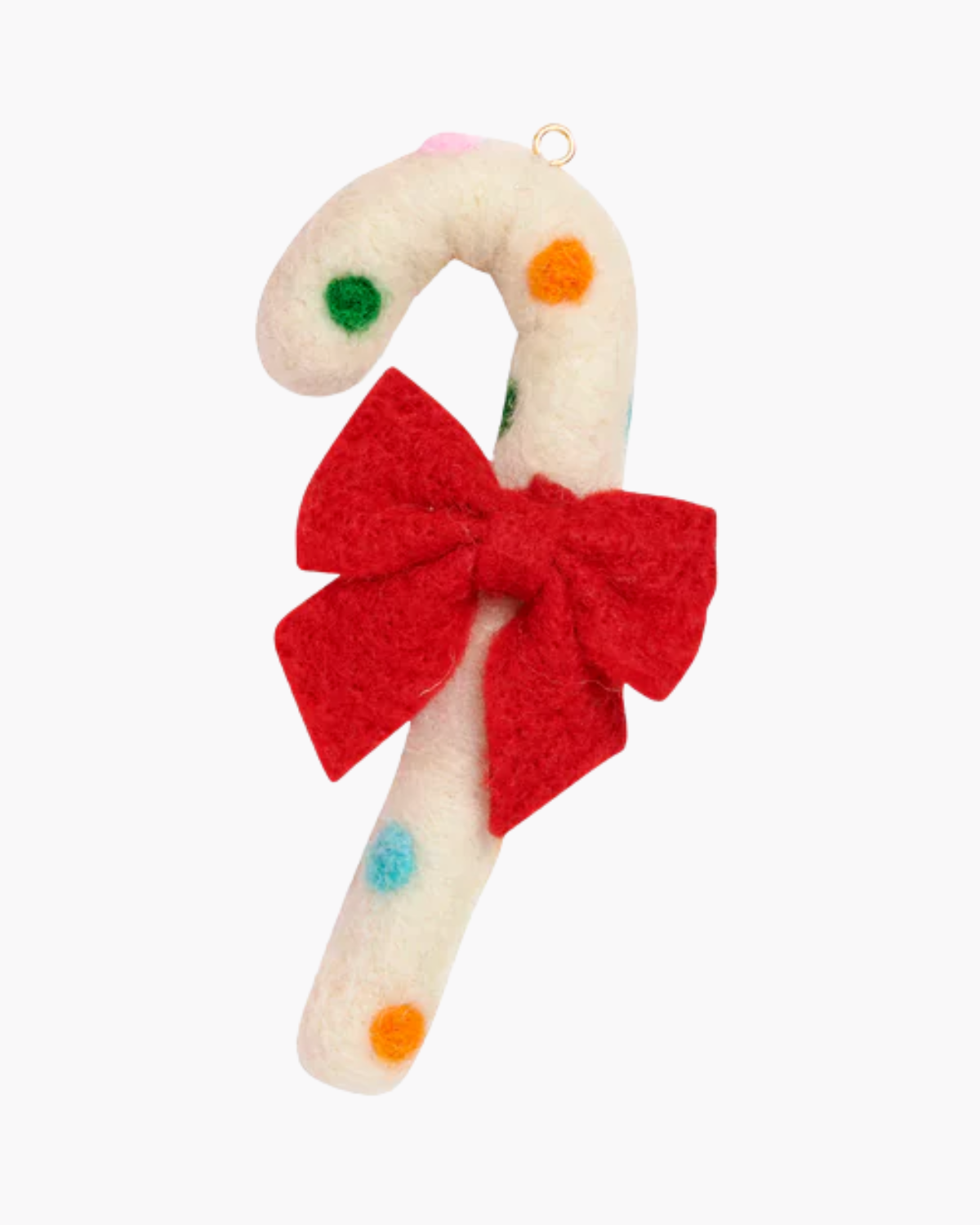 Brighten your tree with playful Candy Cane Ornaments, each featuring colorful felt designs and topped with a cheerful red bow. Lightweight and easy to hang, these whimsical decorations add a handcrafted charm to your holiday décor or make sweet little gifts.