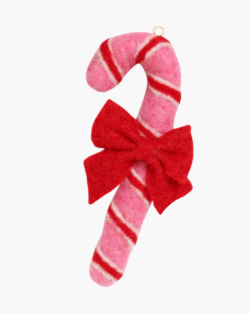 Brighten your tree with playful Candy Cane Ornaments, each featuring colorful felt designs and topped with a cheerful red bow. Lightweight and easy to hang, these whimsical decorations add a handcrafted charm to your holiday décor or make sweet little gifts.
