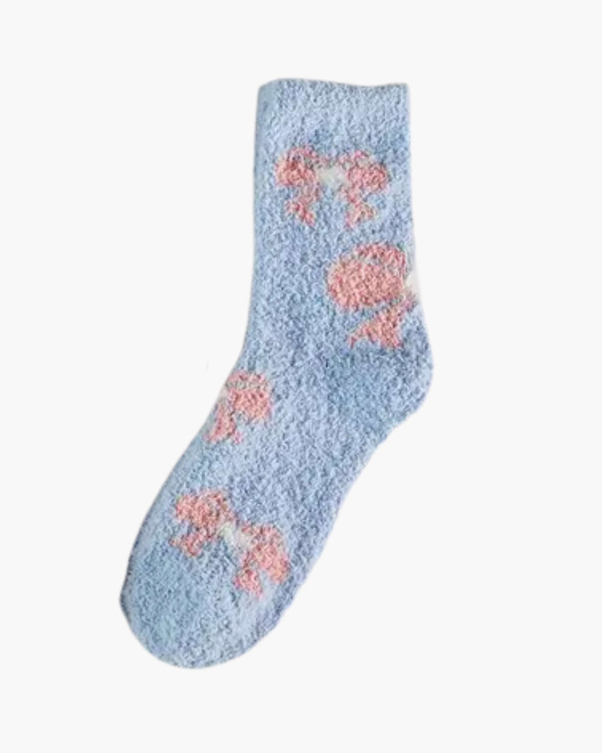 Wrap your feet in softness with these adorable Bow Pattern Cozy Socks. Made from plush, high-pile material with a gentle stretch, they deliver warmth and a snug fit perfect for lounging at home. Cute, cozy, and ideal for gifting—these socks are your new favorite comfort essential.