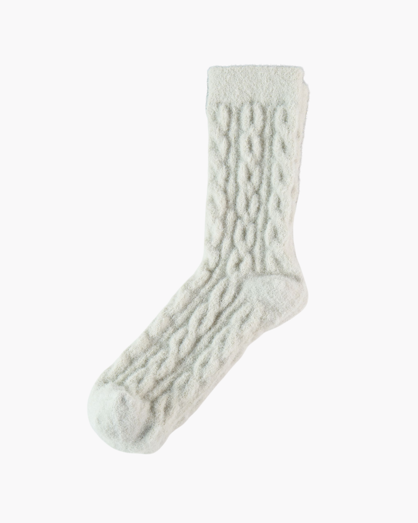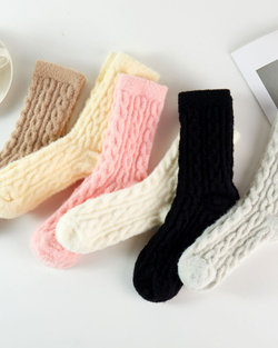 Cozy up your feet with these adorable twisted pattern fuzzy socks! Perfect for chilly nights or lounging at home.