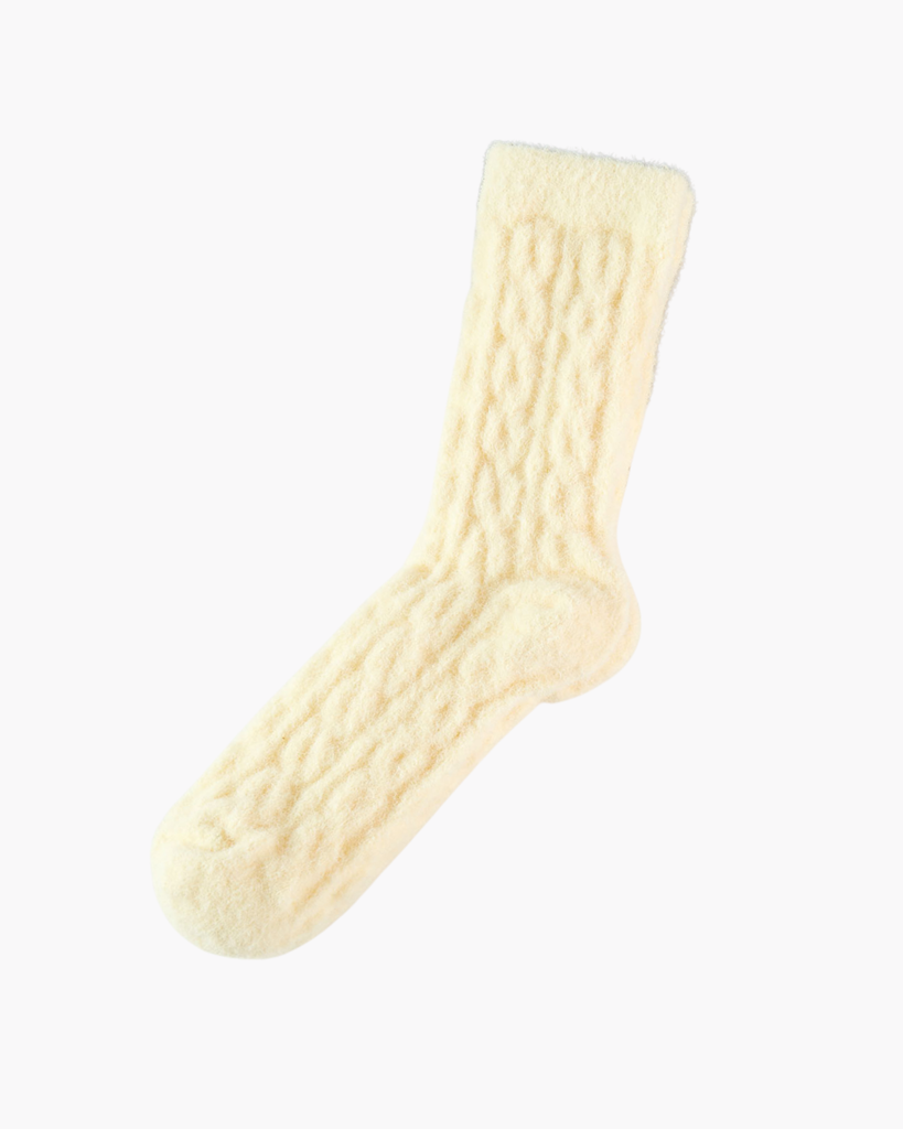 Cozy up your feet with these adorable twisted pattern fuzzy socks! Perfect for chilly nights or lounging at home.