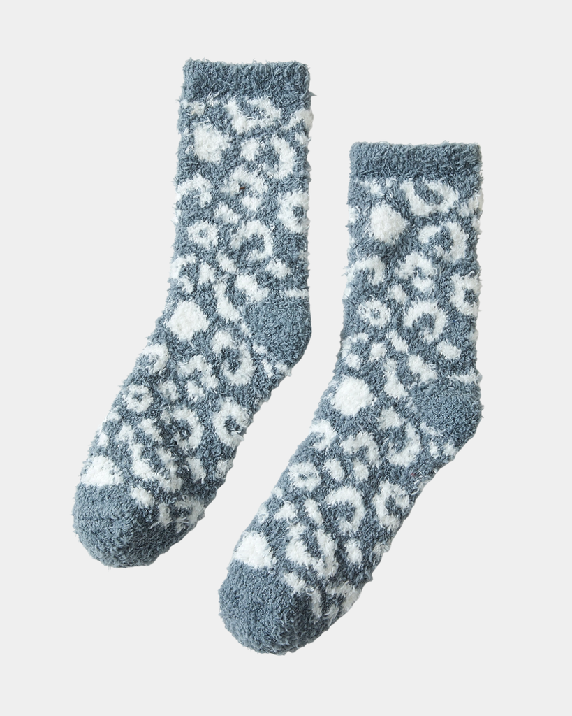 Sink your toes into these irresistibly soft leopard print socks bursting with personality. Crafted from plush, stretchy fabric in chic neutrals—black, gray, ivory, tan, and beige—they're your go-to for cozy nights in or gifting style-savvy friends.