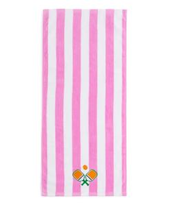 Stay Fresh and Stylish On and Off The Court With The Paddles Stripe Pickleball Towels! Featuring Pink-and-White Stripes, These Towels Are As Functional As They Are Fun. Embroidered With Playful Paddle and Ball Details, They’re The Perfect Courtside Companion For Your Pickleball Matches Or Practice Sessions.