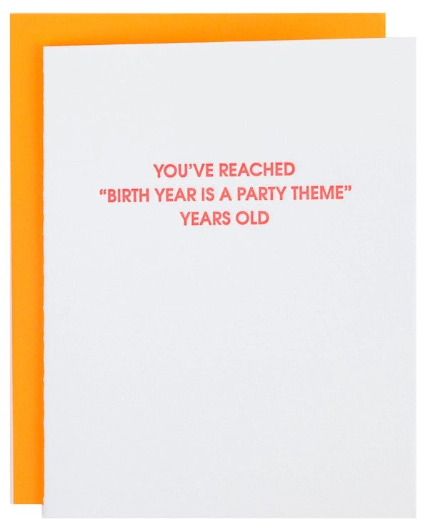 Celebrate the birth year of your loved ones with this personalized Letterpress Card! Featuring a playful party theme, this card is sure to make them feel special. Remind them of all the fun memories and good times to come! (Get it? "Come"? Birth year? Okay, we'll see ourselves out.)