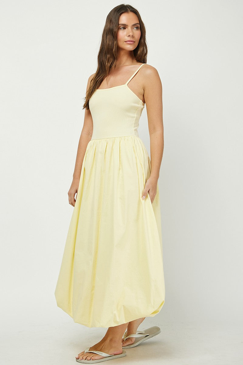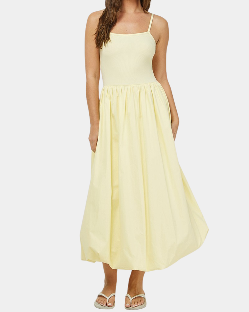 Sunshine meets style in this breezy sleeveless dress that mixes textures for an effortlessly chic vibe. The cheerful yellow hue pairs perfectly with layered pieces or stands solo on warm days.