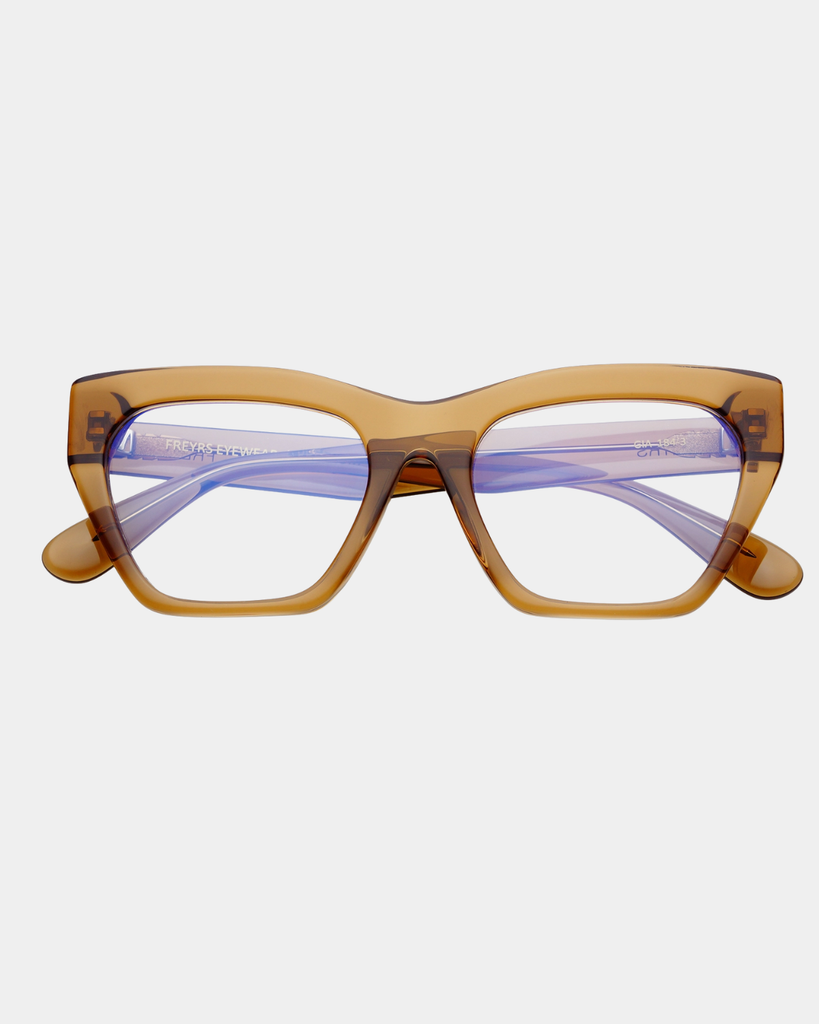 These brown Freyrs Gia Blue Light Readers provide clinically-backed blue light filtration to reduce digital eye strain and enhance visual comfort during extended screen time. An essential accessory for professionals and frequent device users.