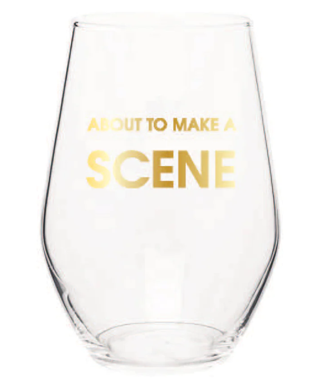 Crush your wine in style with our "About To Make A Scene" gold foil stemless wine glass.