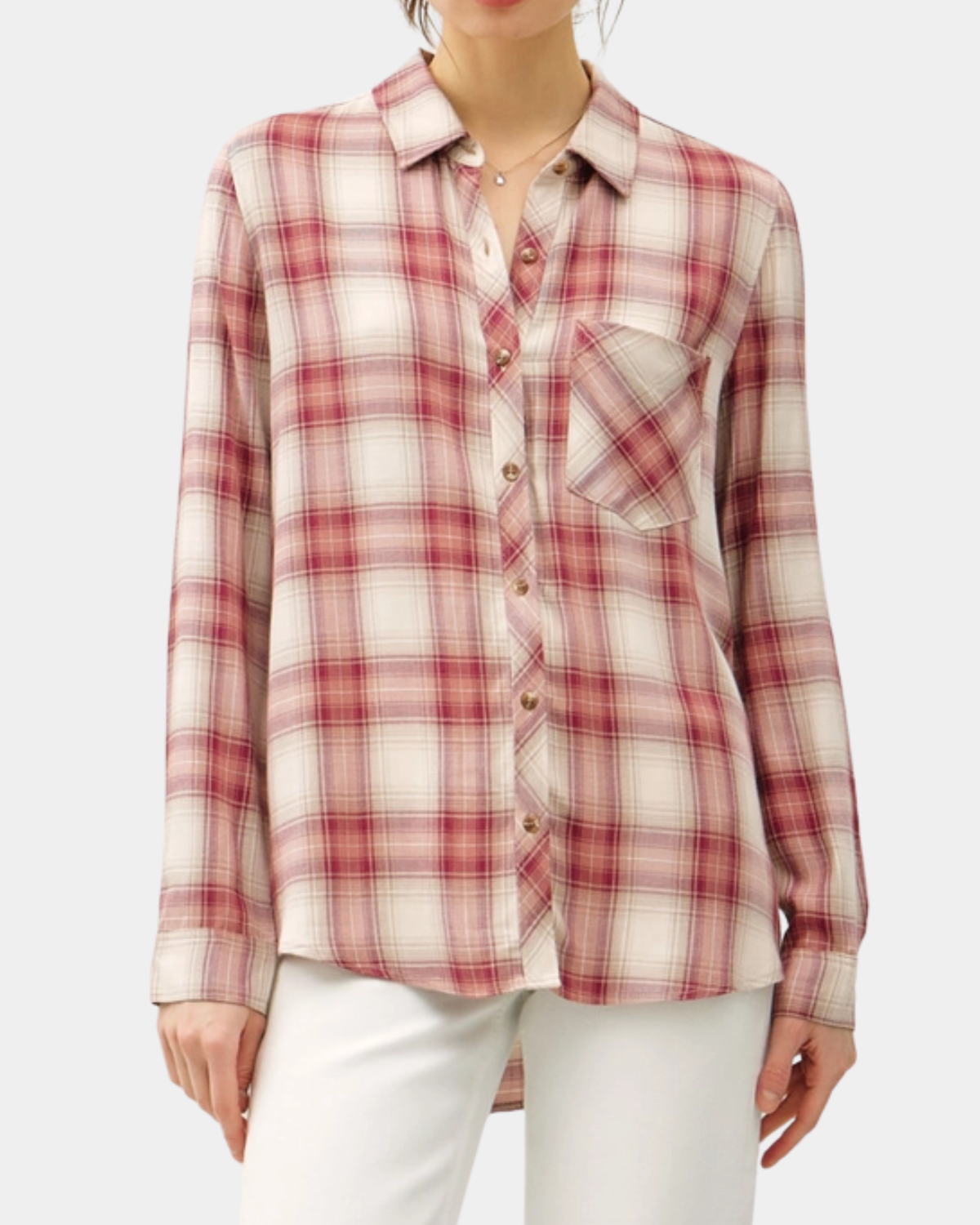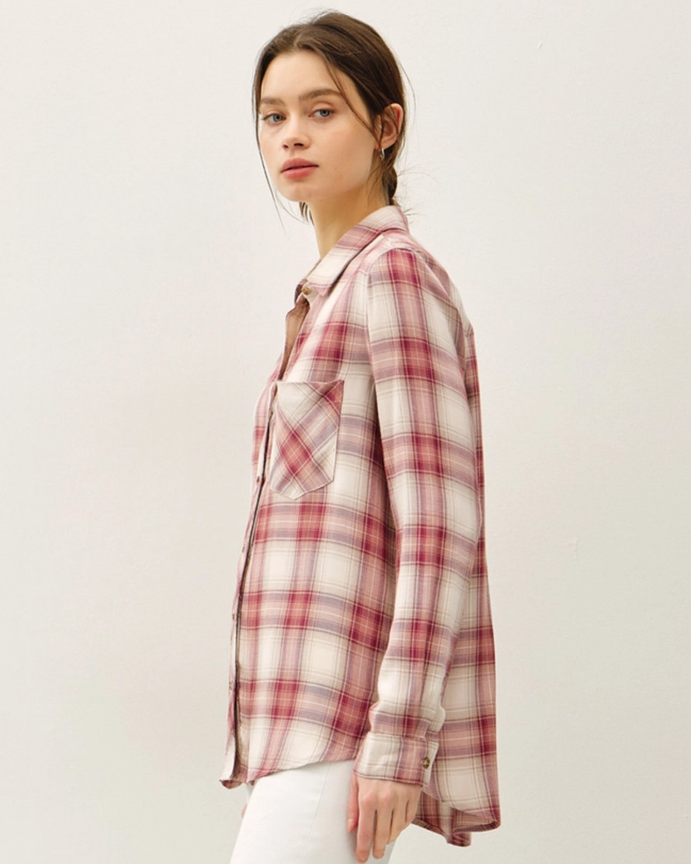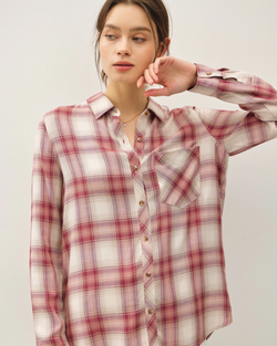 Meet your new wardrobe essential: a wine plaid button-up with an irresistibly relaxed, oversized fit. Wrapped in buttery-soft fabric, this timeless piece is ready for anything—layering, solo styling, or pure comfort vibes.