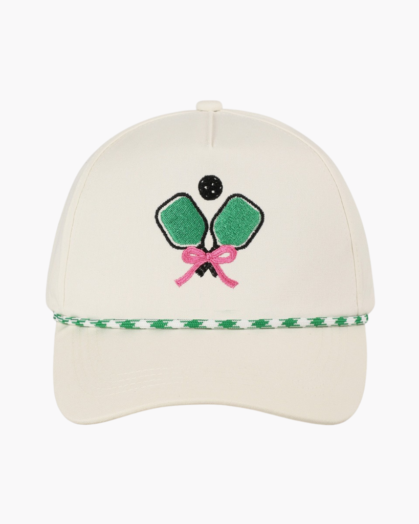 Rock your pickleball passion with this vibrant green trucker hat, complete with charming ribbon embroidery. Perfect for court days or casual outings!