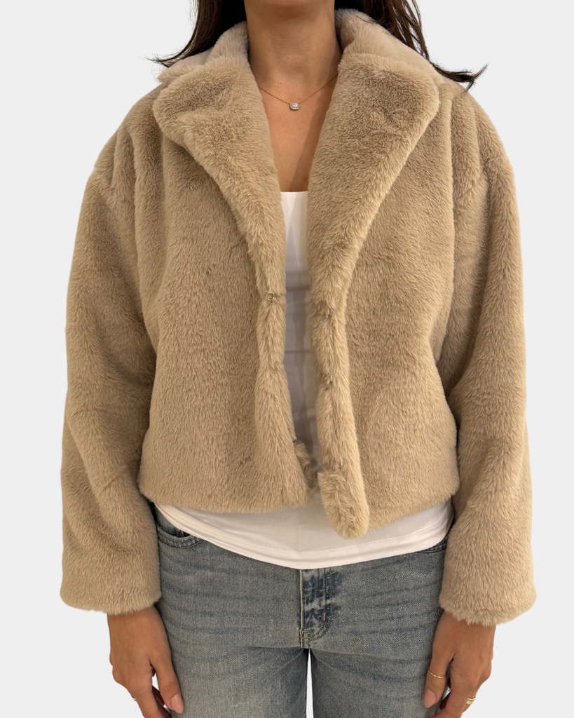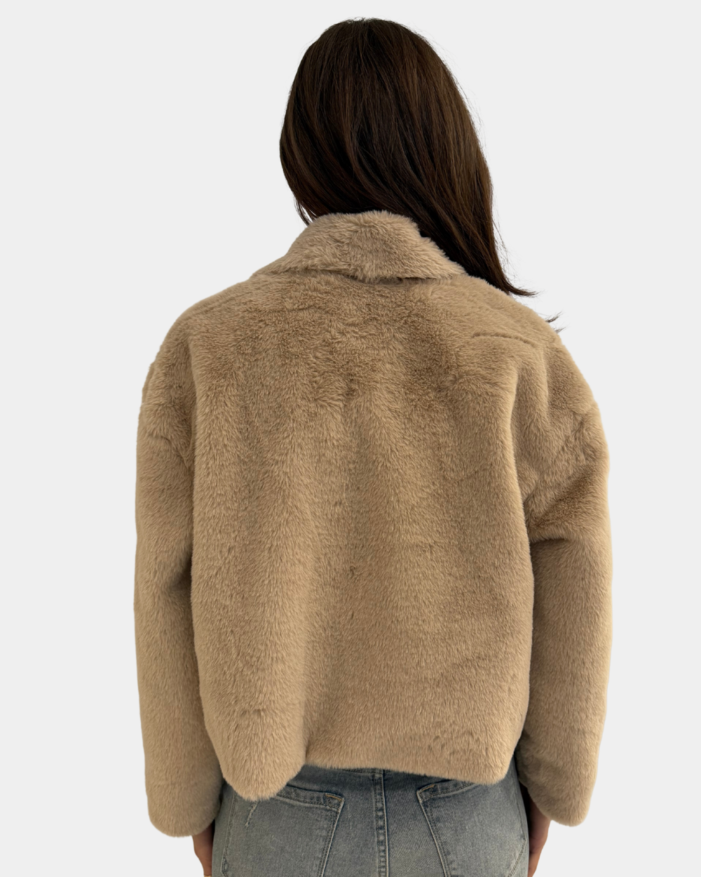Soft, cozy, and totally cruelty-free, it's the statement piece your wardrobe's been craving. Whether you're heading out for a night on the town or just want to feel fabulous, this jacket delivers instant glamour.