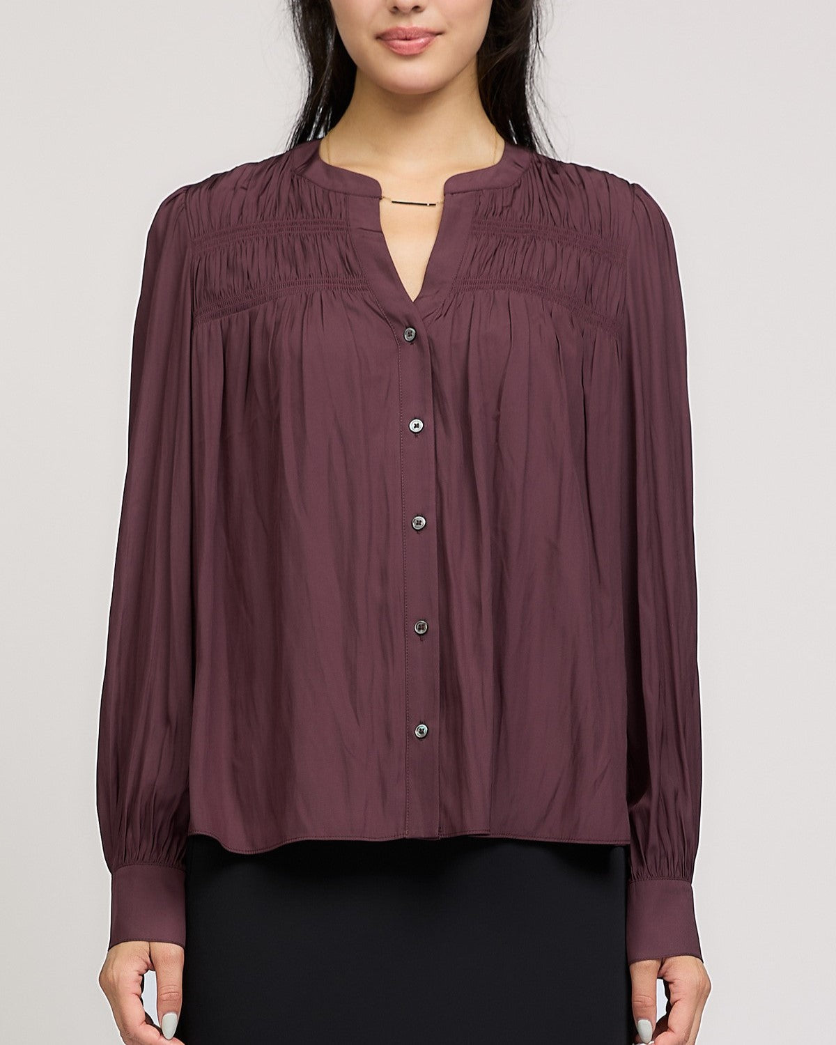 Unleash your inner fashionista with our Button Down Blouse in Midnight Plum! This versatile top features a classic button down design in a rich, deep plum color. Perfect for any occasion, this blouse will make you stand out in style. Get ready to turn heads and make a statement with this must-have piece!