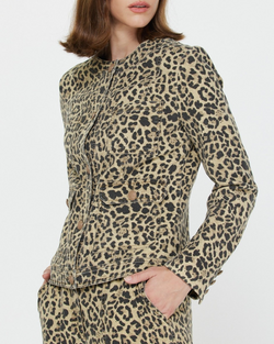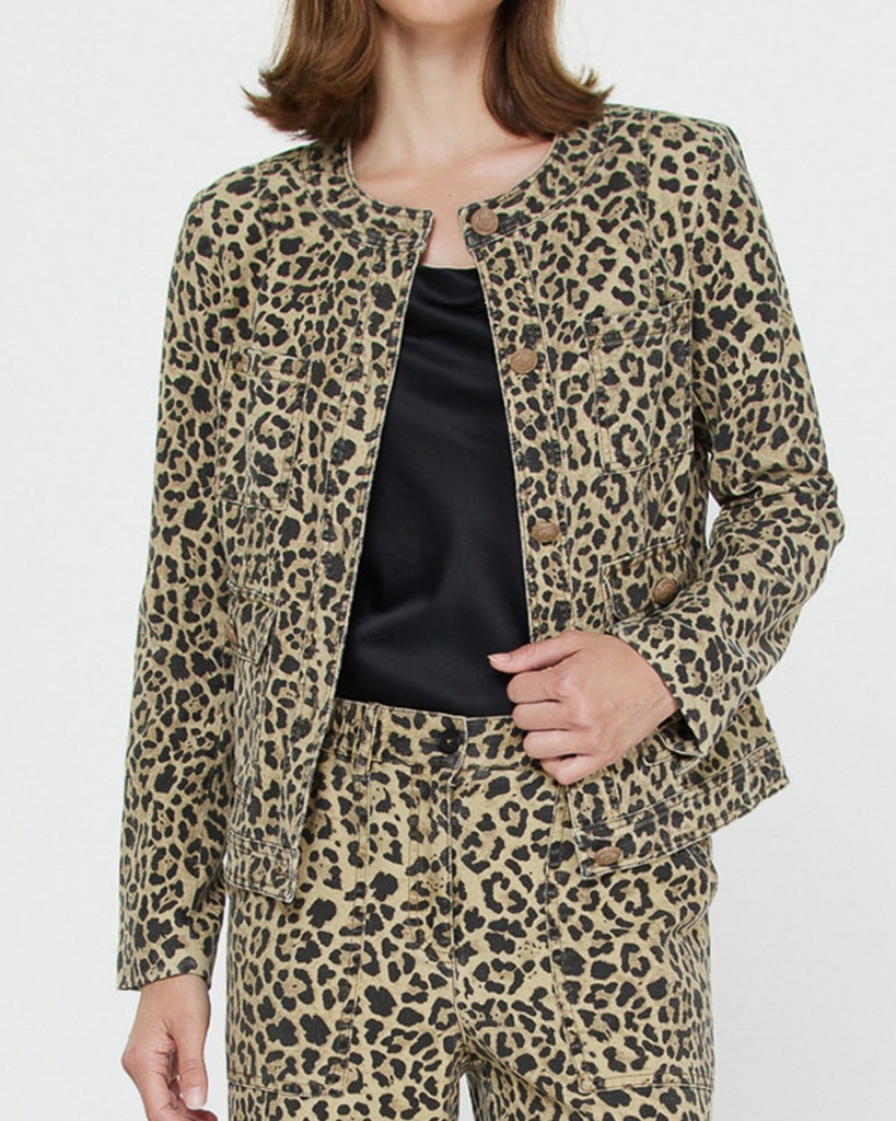Elevate your wardrobe with this sophisticated cotton jacket featuring a bold leopard print that effortlessly commands attention.