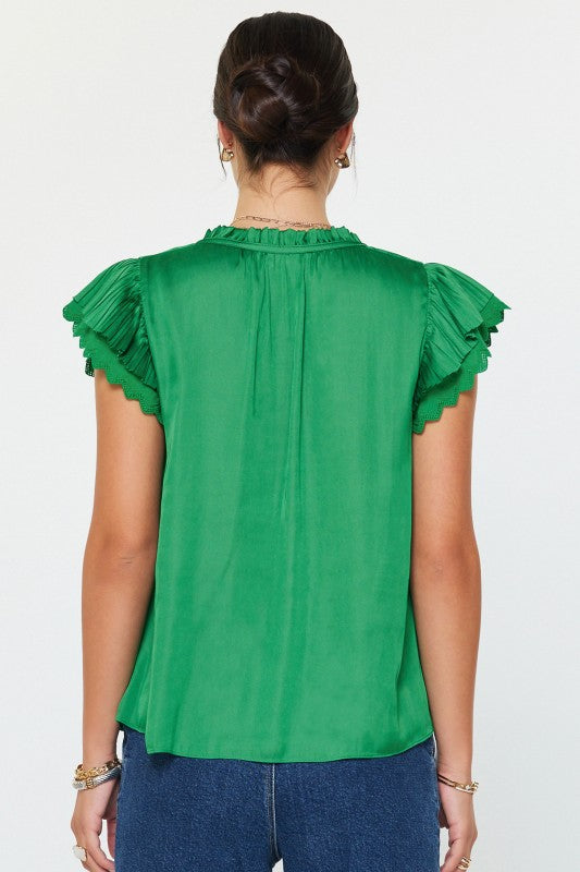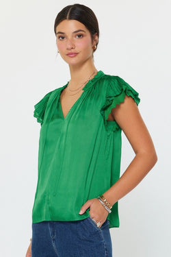 Fluttery sleeves meet effortless style in this navy blouse that's ready for anything. The double flutter detailing adds a touch of whimsy to your everyday wardrobe, while the short sleeves keep things breezy and comfortable.