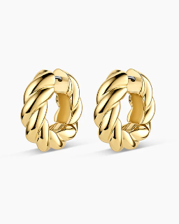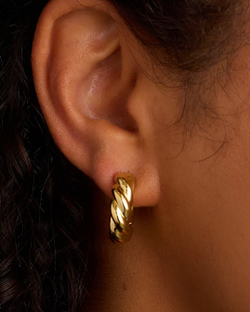 Elevate your style with the Crew Helium Hoops. Featuring a unique twist texture and helium design, these gold plated statement earrings transition seamlessly from day to night. We love wearing ours alongside gold and diamond studs.