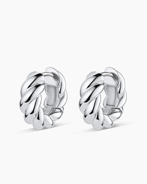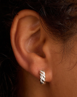 Elevate your style with the Crew Helium Huggies. Featuring a unique twist texture and helium design, these silver plated huggie earrings transition seamlessly from day to night. We love wearing ours alongside silver and diamond studs.