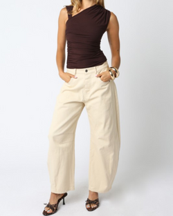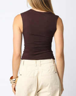 The Mia Knit Top in Dark Brown flaunts an asymmetrical neckline that adds a stylish twist to your wardrobe. Sleeveless and effortlessly chic, it’s perfect for layering or wearing solo when you want to keep things cool and captivating.