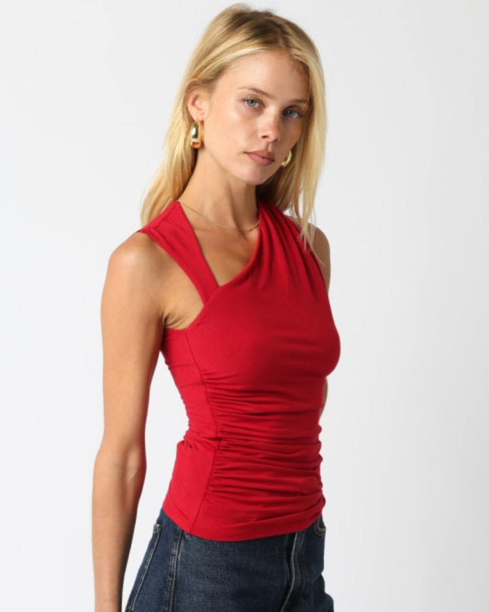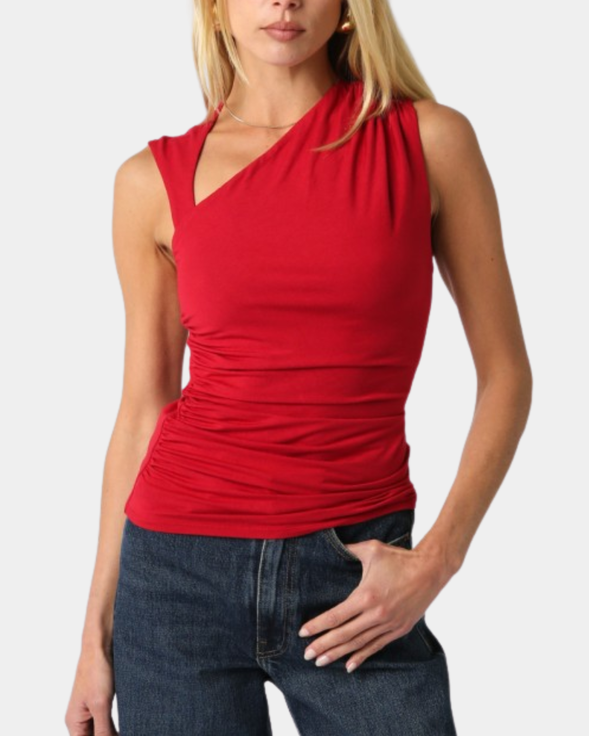 The Mia Knit Top in Dark Brown flaunts an asymmetrical neckline that adds a stylish twist to your wardrobe. Sleeveless and effortlessly chic, it’s perfect for layering or wearing solo when you want to keep things cool and captivating.