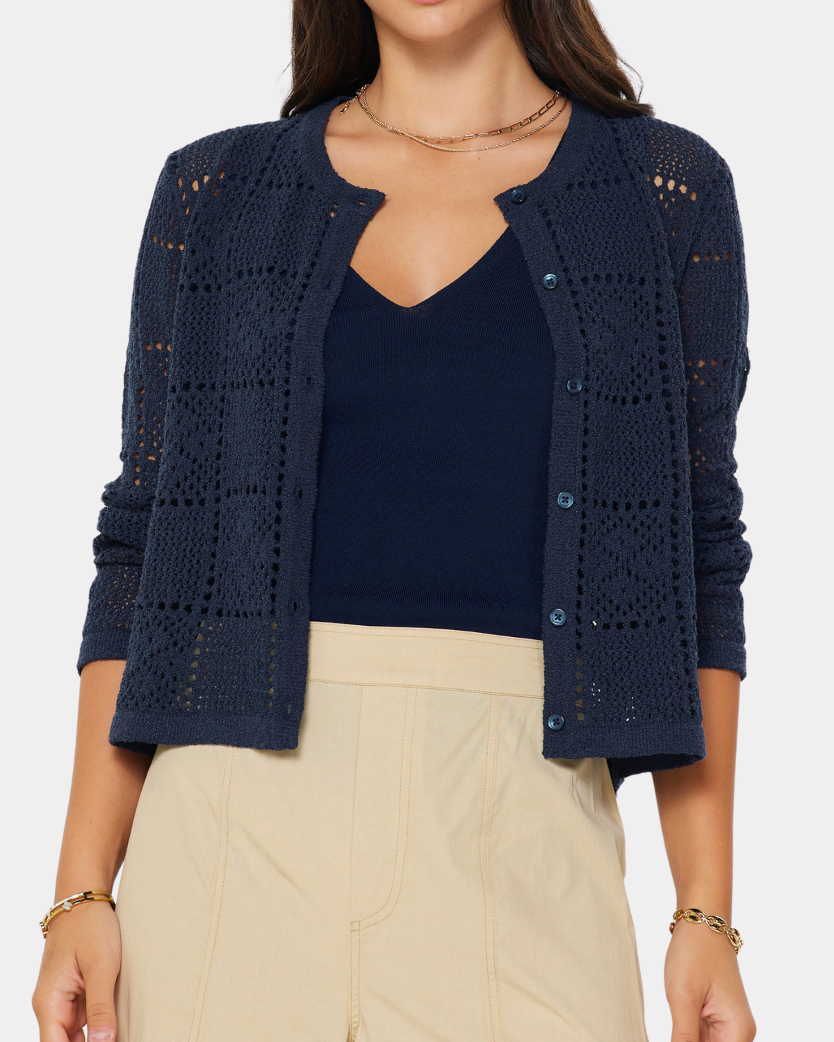 Delightfully crafted using a crochet knit material with a charmingly open-weave design. Embrace your inner fashionista with the geometric crochet stitch.