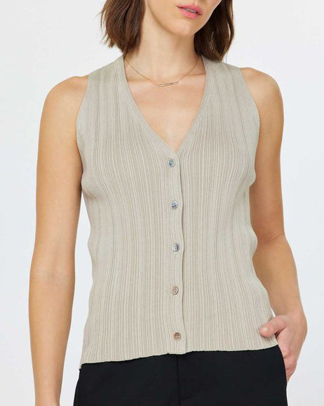 Elevate your wardrobe with this sophisticated black sleeveless sweater top featuring a classic v-neck and elegant button-down front. Its lightweight knit offers a refined drape, perfect for layering or wearing alone on warmer days. Designed to combine comfort with timeless style, this versatile piece effortlessly enhances both casual and polished ensembles.
