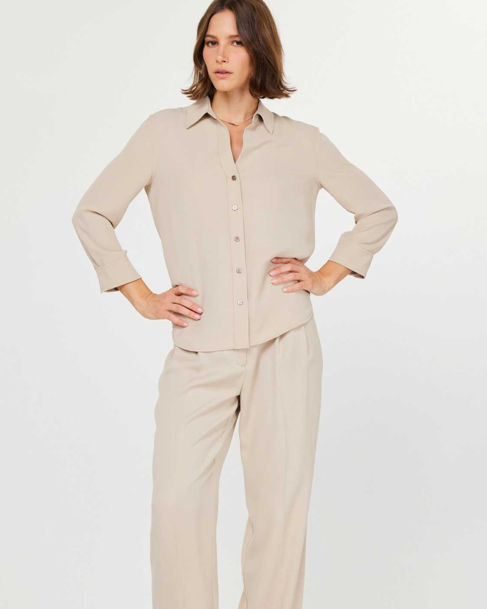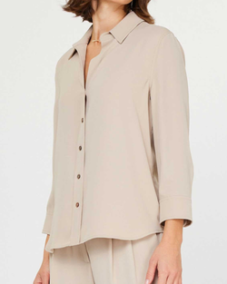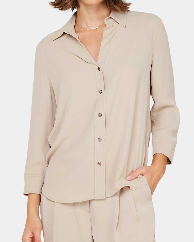 A modern essential for the discerning wardrobe. This button-down features three-quarter sleeves that bridge casual and formal styling. Clean lines and quality construction make it an ideal layering piece or standalone statement, perfect for creating effortless, polished looks.