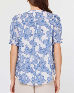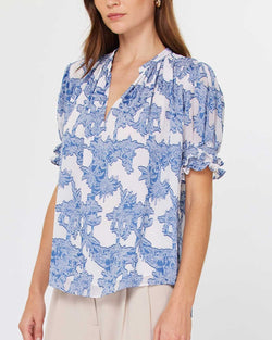 Upgrade your wardrobe with this playful yet stylish V-Neck Short Sleeve Mandarin Collar Blouse in Denim Blue. The flattering v-neck and mandarin collar add a touch of sophistication, while the soft and breathable fabric guarantees comfort all day. Perfect for any casual or formal occasion.