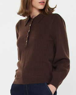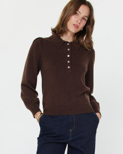 Crafted for comfort and style, this brown button-front collared sweater features a soft fabric that gently embraces the skin. Its classic button closure allows easy wearability, while the structured collar adds a polished touch. Ideal for layering or as a standalone piece, it combines timeless design with cozy warmth for versatile everyday wear.