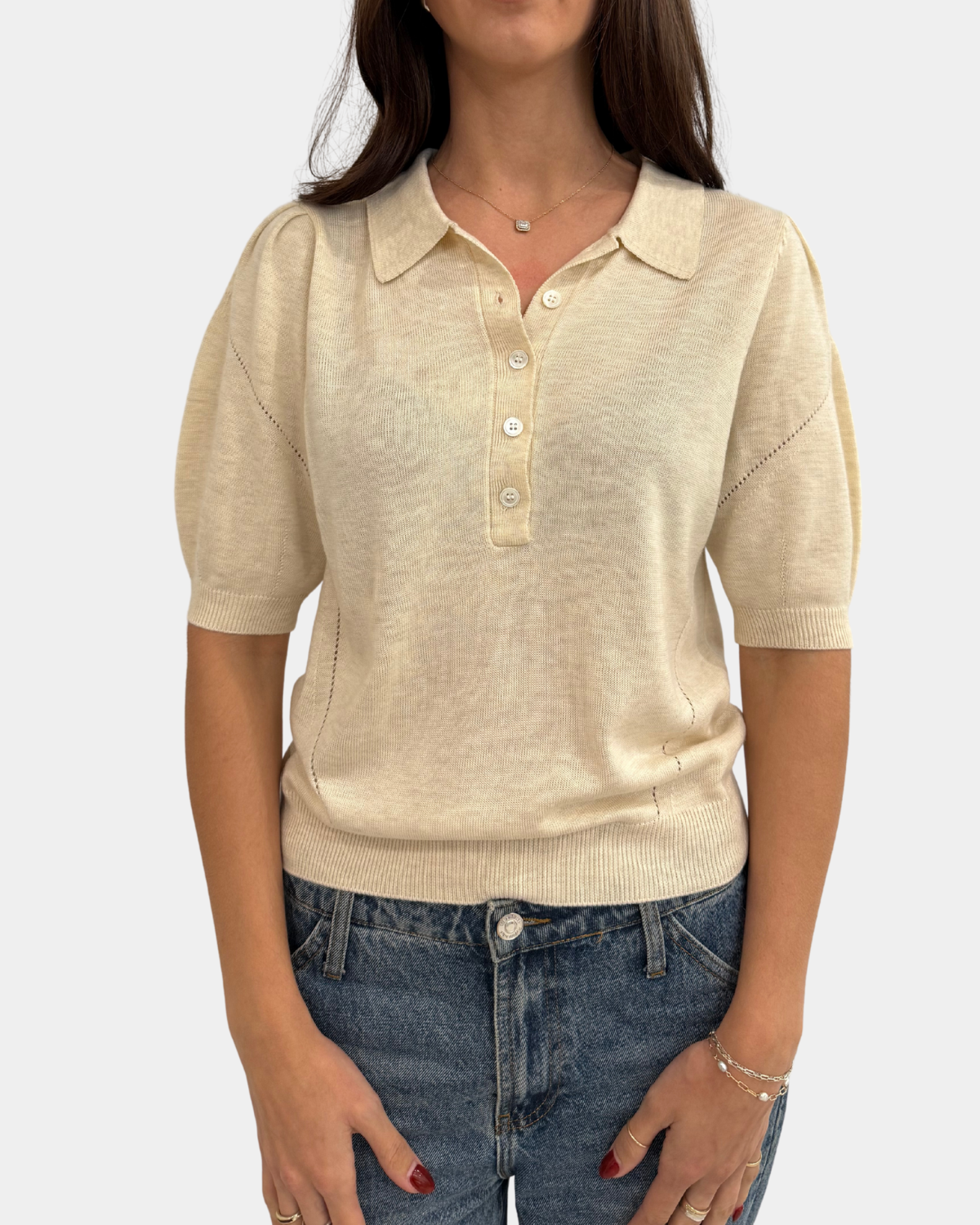 This elegant knit top offers both comfort and style, ideal for achieving a refined casual ensemble.