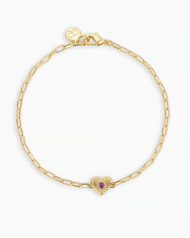 This 18k gold plated bracelet features a genuine gemstone set in a heart design. Whether you choose a stone for its symbolism or just because it looks good, this bracelet is a classic you'll wear on repeat.