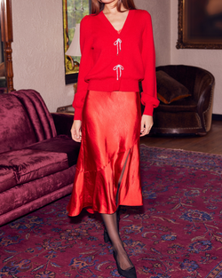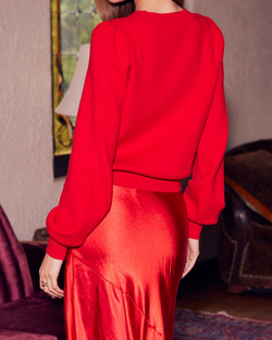 This fun and flirty cardigan highlights adorable puff sleeves and lovely ribbon trim details. Made from a cozy soft knit, it’s perfect for layering over dresses or teaming with high-waisted bottoms for a cute, stylish vibe.