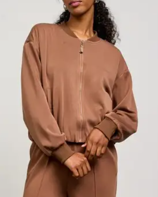 Cozy meets cool in the Modal Bomber Jacket, your new go-to for effortless style. With its soft brushed fabric and laid-back vibe, this jacket brings playful comfort to every outfit.