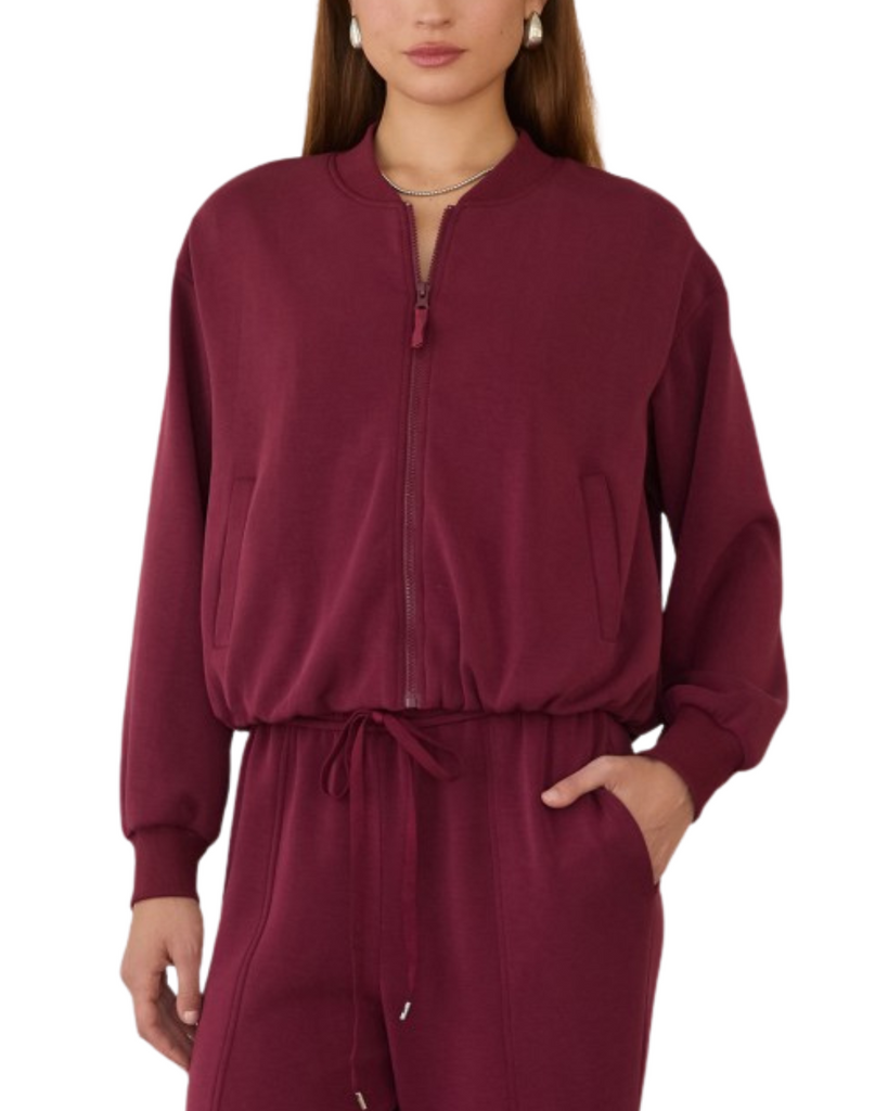 Step out in style with the Soft Modal Bomber Jacket in Rosewood, where cozy meets cool in the best way. This playful jacket adds a pop of color and a soft touch to any outfit.