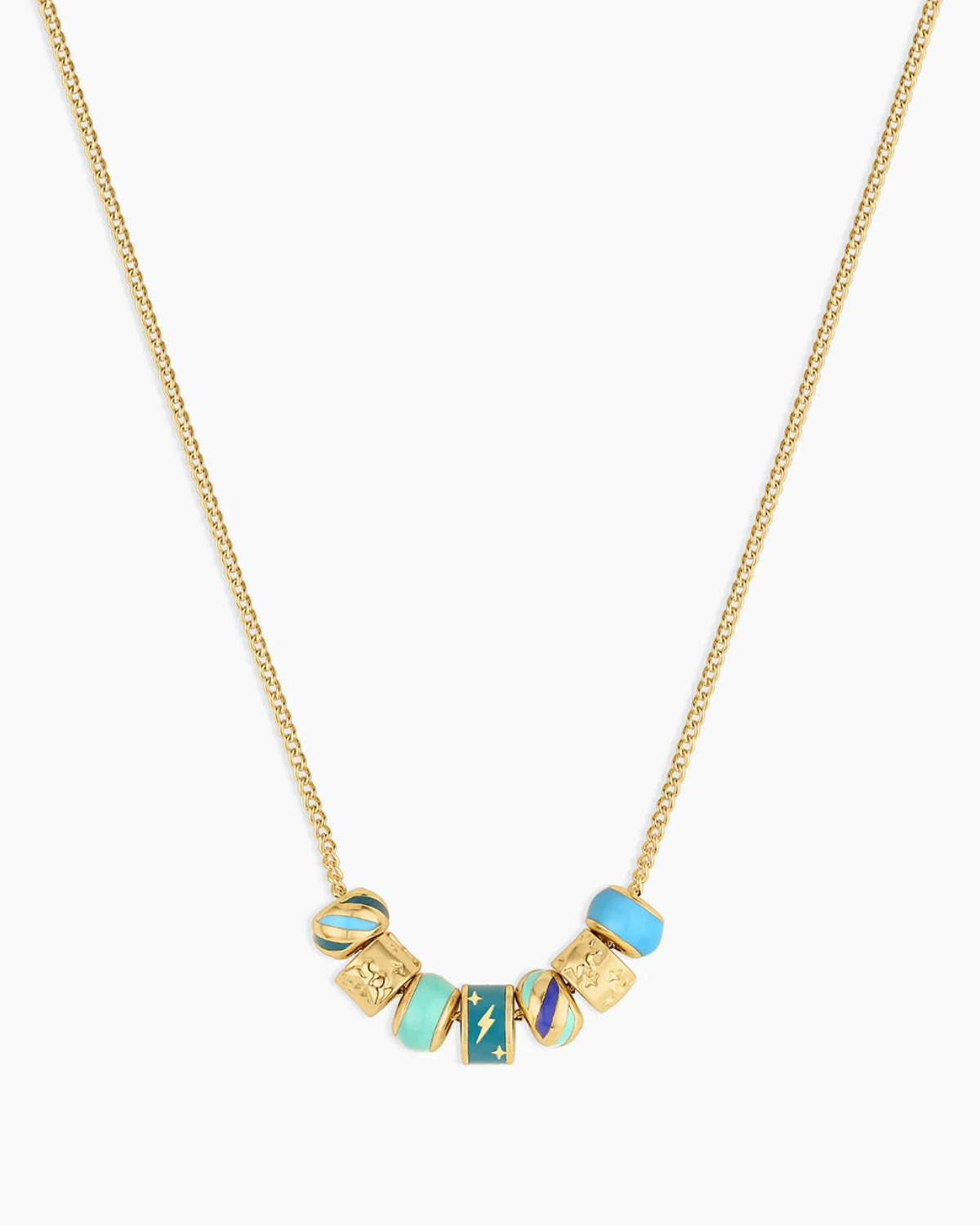 Let your jewelry do the talking with this vibrant enamel and gold-plated necklace featuring special symbols. Whether you stack it up or wear it solo, its lightweight charm adds a fun spark to any outfit and gets conversations started.