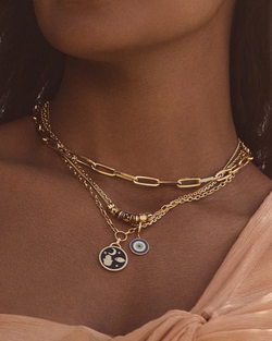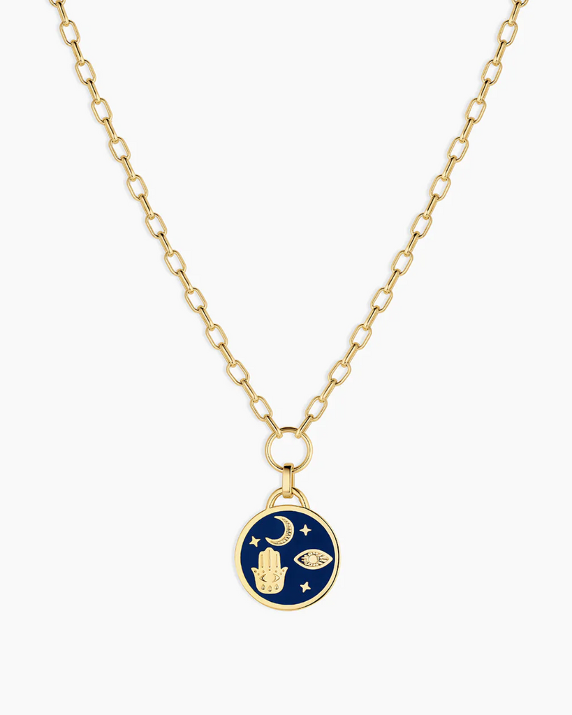 This fun enamel and gold-plated necklace shines with meaningful symbols that add a pop of color to any look. Wear it alone or layer it up to spark conversations wherever you go.