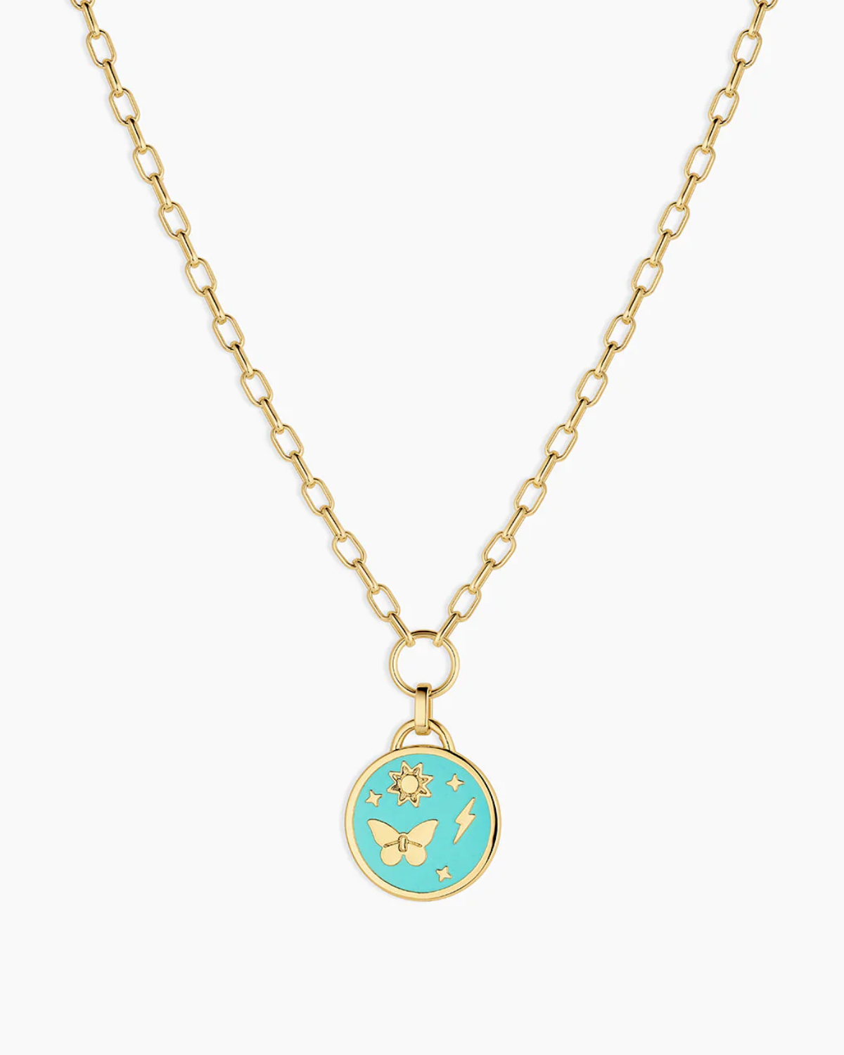 This bright enamel and gold-plated necklace showcases special symbols that add a fun touch to any look. Whether layered or worn solo, it’s a lightweight, eye-catching piece that sparks playful conversations wherever you go.