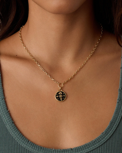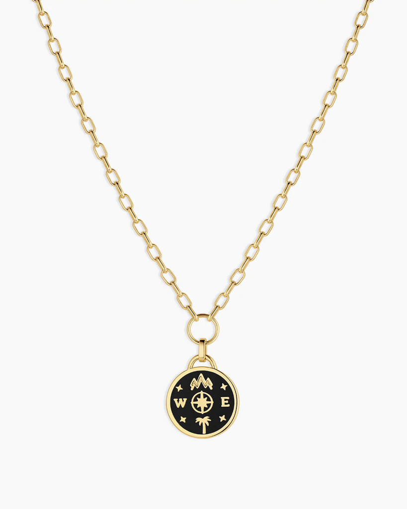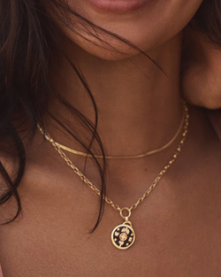 Bright and bold with colorful enamel and gold plating, this necklace carries meaningful symbols to spark curiosity. Wear it alone to send a low-key message or pile on the layers for extra fun. Light on your neck but heavy on style, it’s a playful little charm that livens up any outfit and gets people talking.