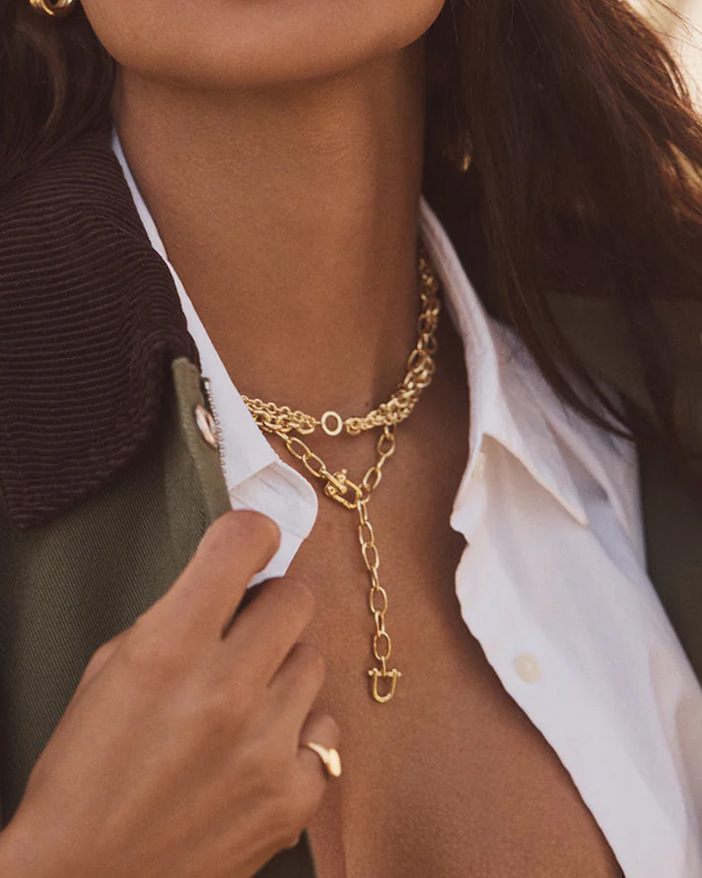 This chunky, gold-plated chain necklace lets you add charms for a fun and personalized twist—wear it solo for bold vibes or layer it up to show off your style chops.