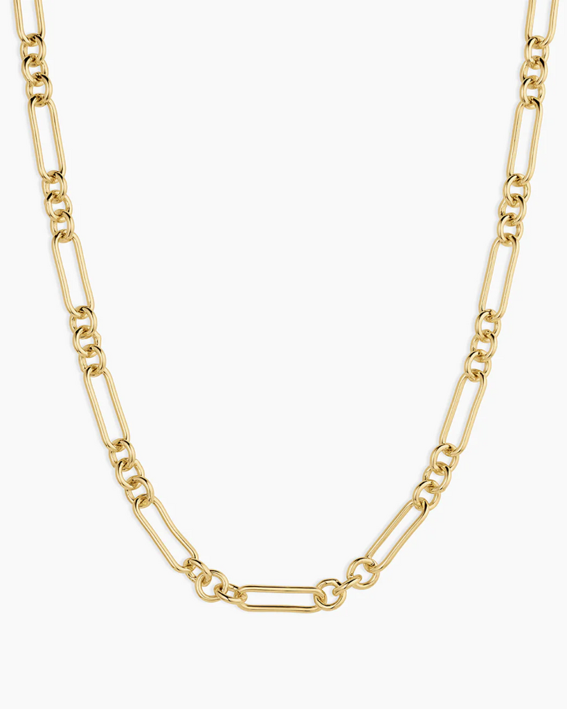 Featuring spacious links perfect for adding your favorite charms, this gold-plated necklace offers a timeless elegance. Crafted for layering, it effortlessly complements any ensemble with a refined touch.