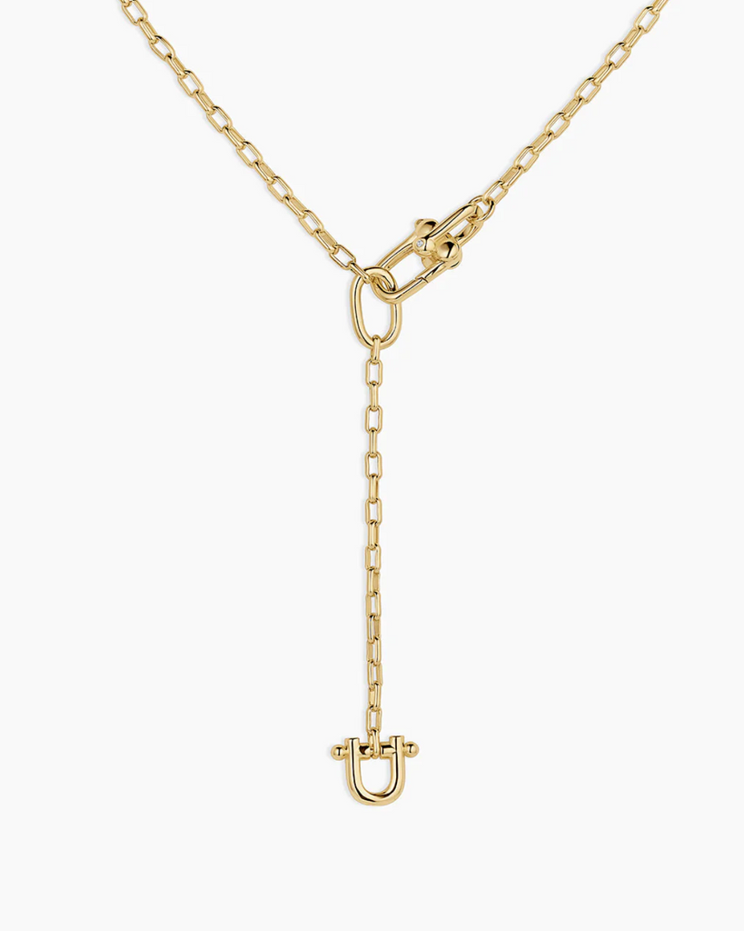 This delicate gold-plated lariat necklace is stunning both worn alone and layered with other favorite pieces, elegantly shifting from a classic look to a subtle edge. Its lightweight design and refined finish ensure versatility for any style you choose.