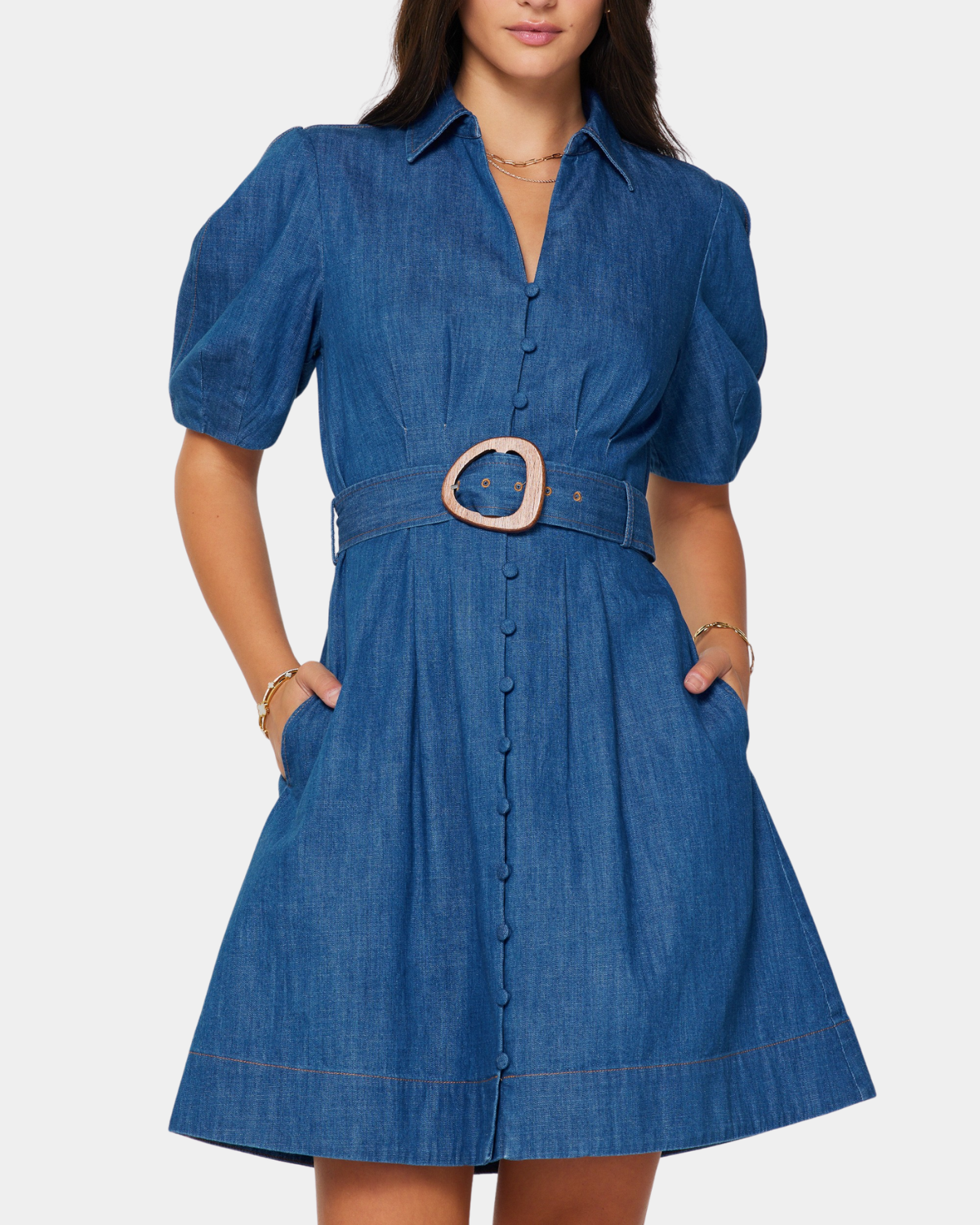 Add some volume to your style with this Belted Mini Dress! This denim dress features puff sleeves with pleated detail, adding a fun twist to the classic button down design.