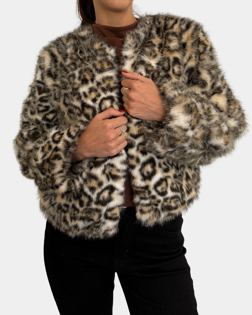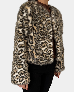 This Cropped Leopard Jacket in brown and multi adds a wild twist to your wardrobe with its bold print and snappy fit. Perfect for turning heads while keeping things fun and fierce!