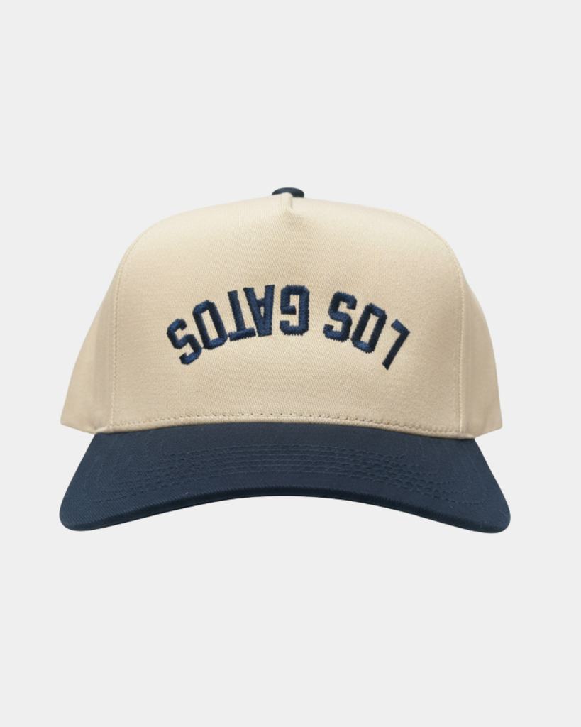 Flip your style with the Upside Down Los Gatos Trucker Hat in Sand/Navy — a fun twist on a classic look.