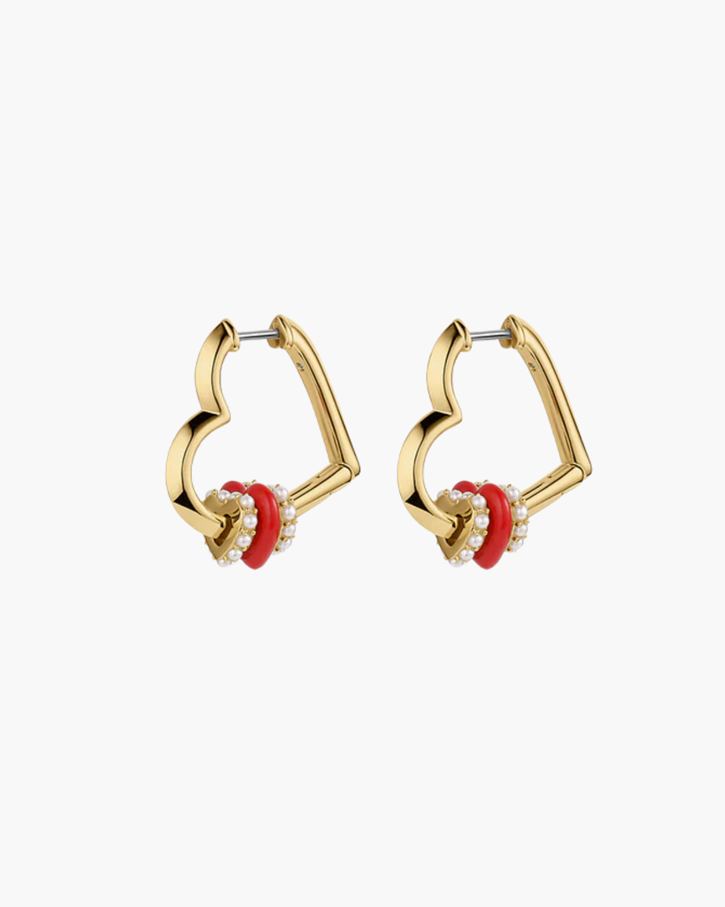 Adorable heart-shaped hoops that mix vibrant red enamel with delicate pearls for a fun, eye-catching twist. Stack them, wear them solo—either way, they're guaranteed to bring joy and personality to your ear game.