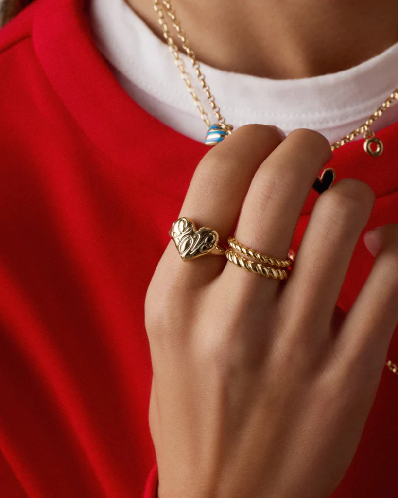 A functional heart-shaped ring that opens and closes, engraved with 'Love' in delicate script. Mix nostalgia with modern style by stacking it with your favorite rings or inserting a tiny photo inside. Meaningful without being fussy.